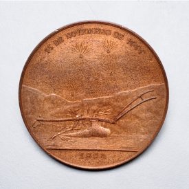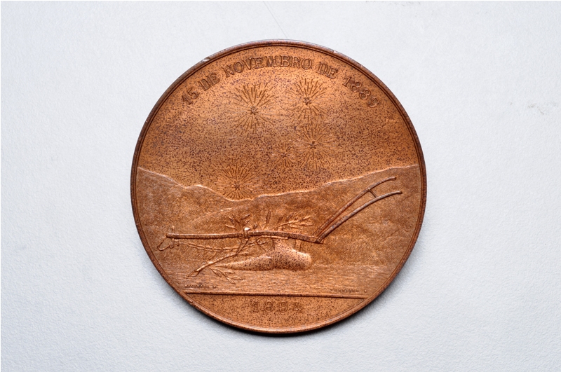 Forma: circular com rebordo; bordo liso. Anverso: no campo, arado com galho, montanhas ao fundo e cinco estrelas raiadas. Na orla superior ao inscrição: "15 DE NOVEMBRO DE 1889"; no exergo "1894". Reverso: em campo raiado por estrela de cinco pontas, braço sustentando espada embainhada entremeado por galho e encimada por barrete frígio, contornado por círculo interrompido de vinte estrelas de cinco pontas.